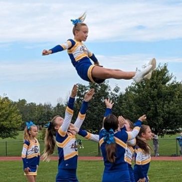 Get outside, get active and make life-long friends! Channel all that energy through football and cheer! Players may see their speed, agility and hand-eye coordination improve! But most importantly, the best part is getting out and moving!